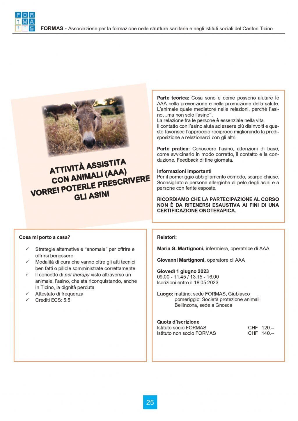 Con rammarico, a causa di limitazioni di tempo e difficoltà organizzative personali, non abbiamo più potuto proseguire con i corsi; ringraziamo di cuore FORMAS per l'opportunità e la fiducia offerta in questi anni.